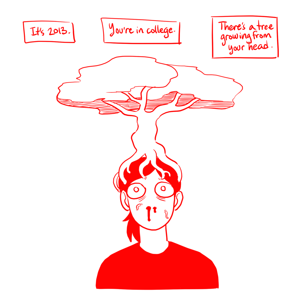 A 9-page autobio comic, about a time in my life I keep revisiting and trying to process.  Content: anxiety, depression, intrusive thoughts, self-harm, body horror as a metaphor.